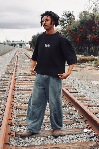 Crafted from a breathable, textured waffle knit, this oversized top delivers a relaxed drape with raw edge attitude. This is more than a fit it’s a statement about resilience, discipline, and rising from nothing.